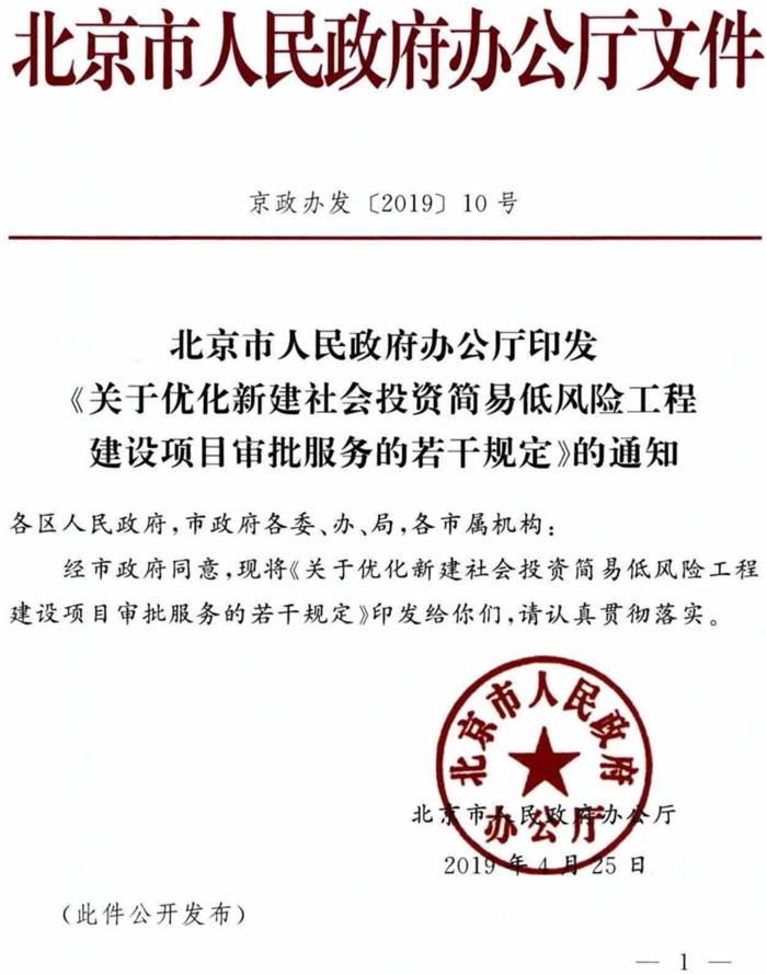 北京《關(guān)于優(yōu)化新建社會投資簡易低風(fēng)險工程建設(shè)項目審批服務(wù)的若干規(guī)定》